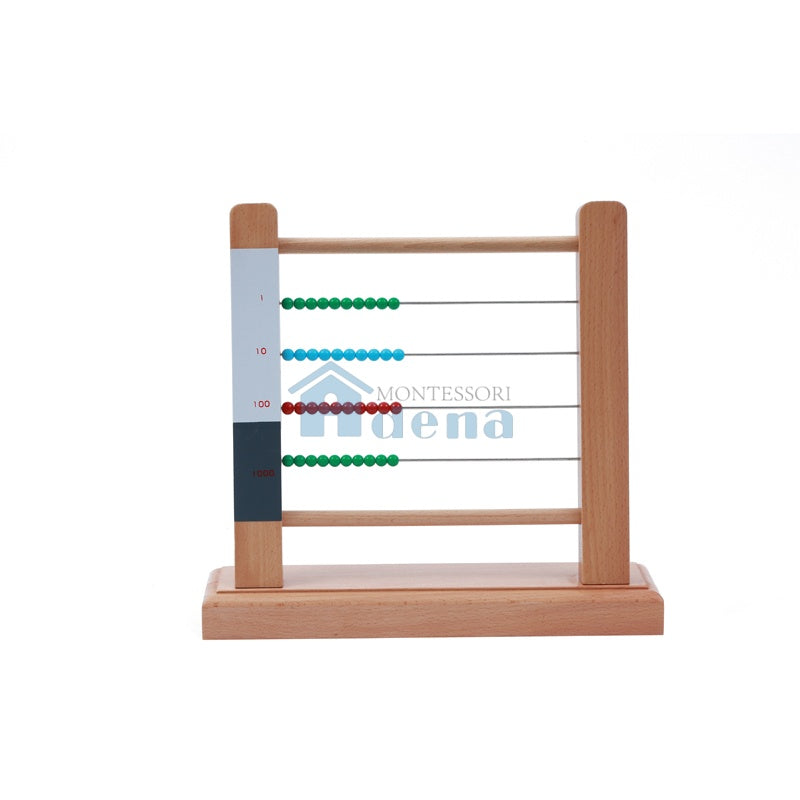 A hardwood frame with 4 rows of beads representing units, tens, hundreds and thousands